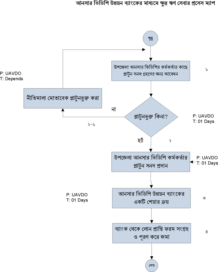 | ৬ | আনসার ভিডিপি উন্নয়ন ব্যাংকের মাধ্যমে ক্ষুদ্র ঋণ সেবার প্রসেস ম্যাপ | দেখুন | |