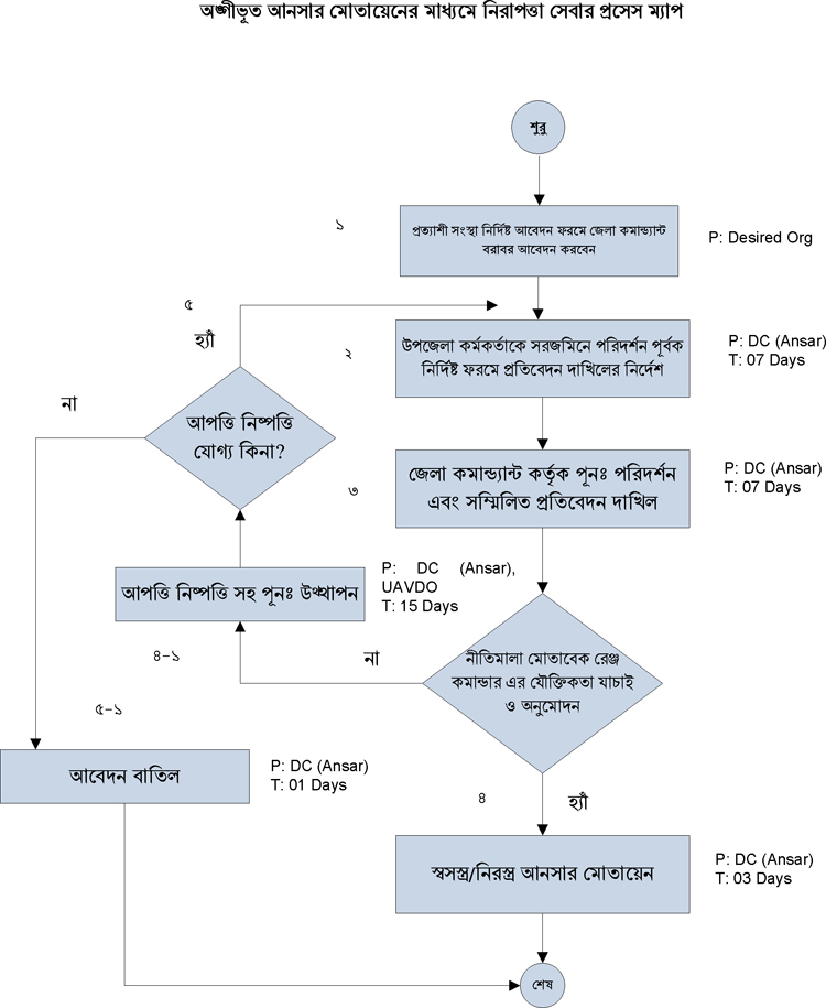 | ৪ | অঙ্গীভূত আনসার মোতায়েনের মাধ্যমে নিরাপত্তা সেবার প্রসেস ম্যাপ | দেখুন | |